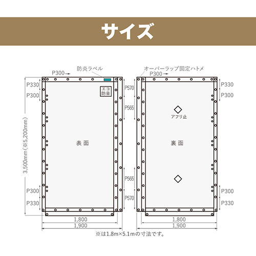 ●実寸法:<1.8×3.4m>/約1.90×3.50m、<1.8×5.1m>/約1.90×5.20m