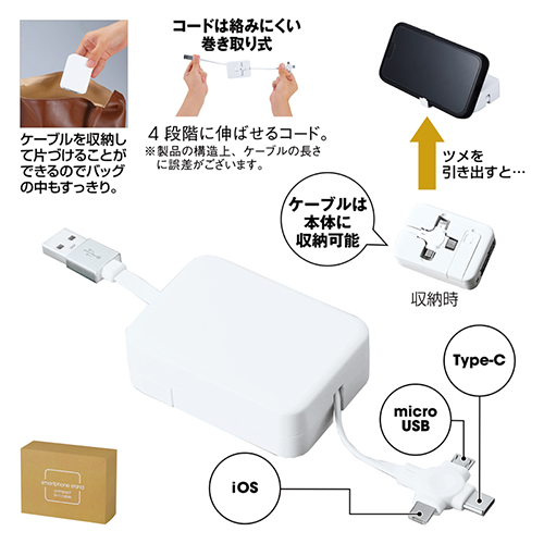 [名入れ] スマホスタンドになるコンパクト3in1ケーブル