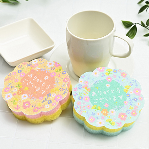 花型にカットされたキッチンスポンジ!カラフルな花柄でキッチンも華やかに。