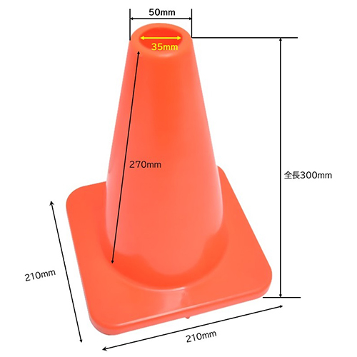 ●1セット:5本入 ●材質:PVC●重量:約550g/台 ●カラー:赤●サイズ:コーン高さ/300mm、コーン底部/210×210mm