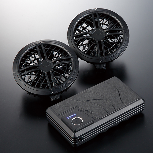 クロダルマファン付き作業服《エアーセンサーシリーズ》はデバイス形状、ウェアのデザイン等が他の空調服及びファン付き作業服系統と異なりますので他社製品との互換性はございません。