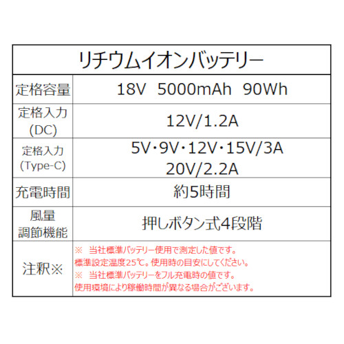 ・定格容量:DC18V/5000mAh/90Wh