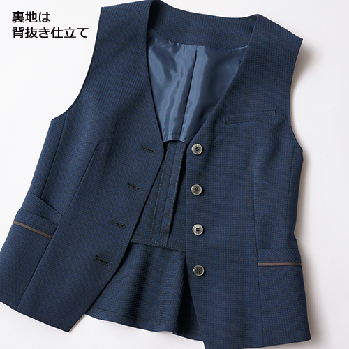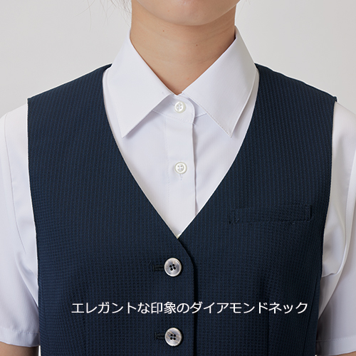 立体的な見た目が特徴のバスケット織の生地が、肌にさらりと心地よく、軽やかな着心地を実現。体のラインをひろいにくいハリ感と優れたストレッチ性で、快適な仕事時間をサポートします。