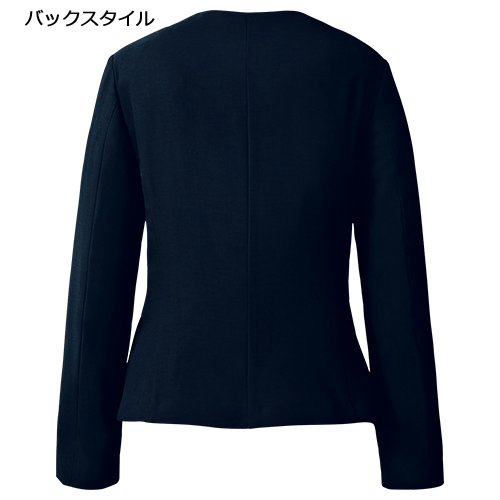 ミニマルな印象のノーカラージャケットできちんと感をプラス!