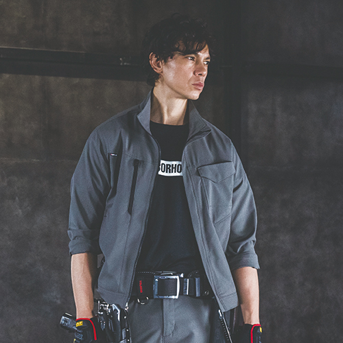 スッキリとしたテーパードシルエットがスタイリッシュなユニフォームスタイルを演出。