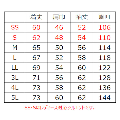 | シルバー ガンメタル オレンジ | SS S M L LL 3L 4L 5L | 1~ | ¥8,965 |