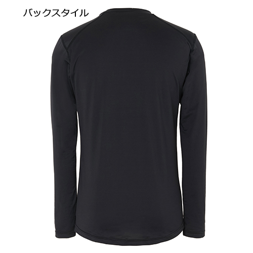先進冷感繊維と先進プリント技術が衣服内温度の上昇を自動コントロールする温度調節機能仕様の長袖クルーネック冷感シャツ。