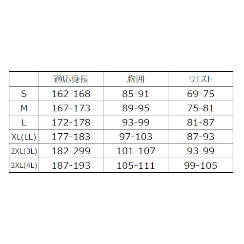 | ホワイト ブラック | S M L XL(LL) 2XL(3L) 3XL(4L) | 1~ | ¥8,580 |