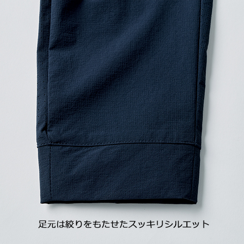 腰廻りにはゆとりを持たせ足元をスッキリとした動き易さ抜群のシルエット。