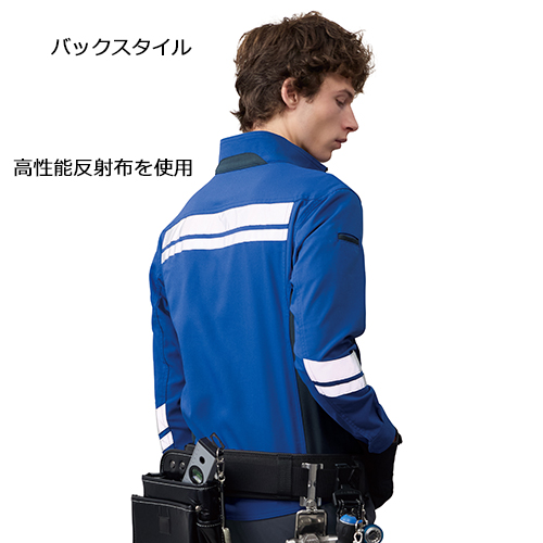 要所に配置した3M【Scotchlite】反射材で周囲からの視認性を確保し夜間作業や倉庫内作業などで対車両事故リスクを軽減。