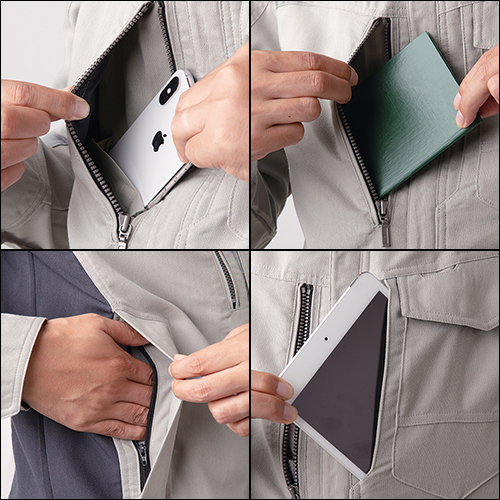 ●右胸大型タテポケット&携帯ポケットW仕様