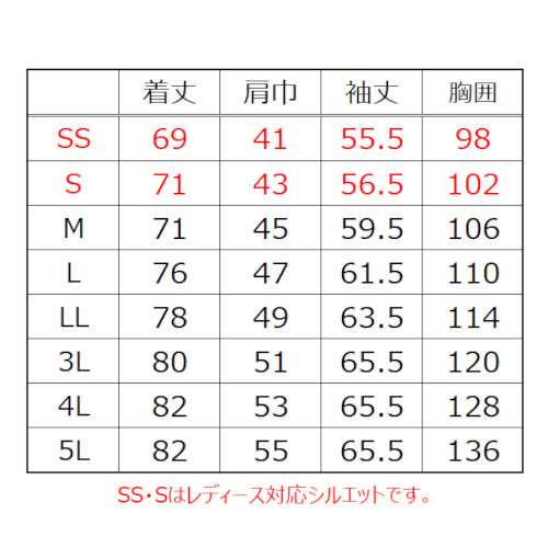 | アッシュグレー ロイヤルブルー ガンメタル オレンジ | SS S M L LL 3L 4L 5L | 1~ | ¥6,941 |