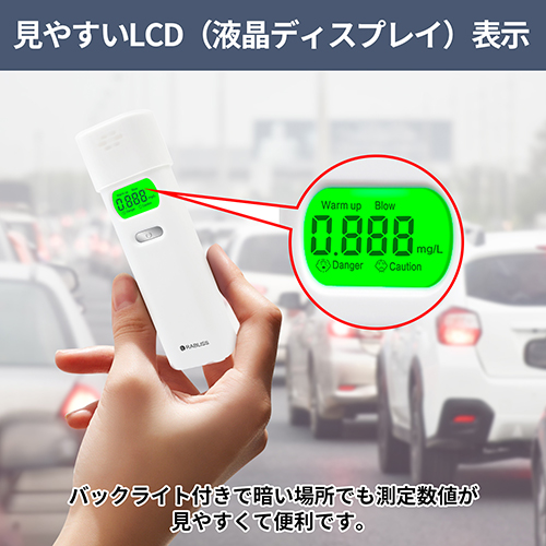 アルコール検知器は、機器に息を吹きかける(吹き込む)だけで、体内の残留アルコール濃度を数値化してくれる測定機器です。