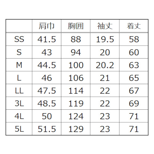| ディープネイビー シルバーグレー ロイヤルブルー アーミーグリーン クロ | SS S M L LL 3L 4L 5L | 1~ | ¥3,190 |