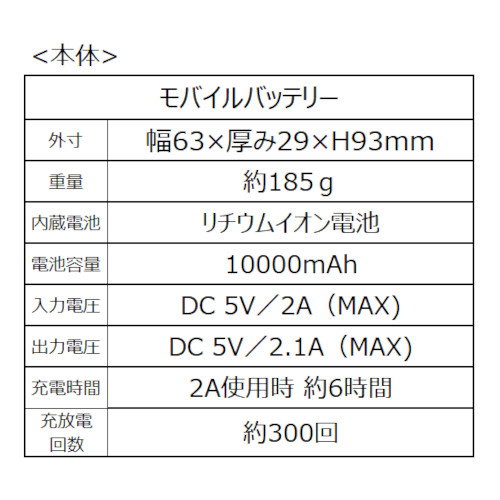 ・電池容量:10000mAh