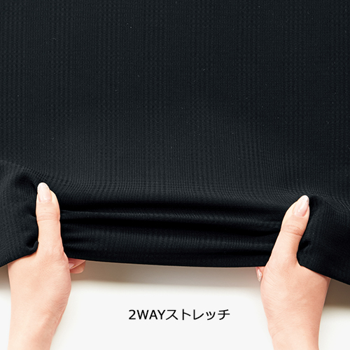 光の加減で表情が変わる洗練された印象のシャドーチェック柄は、2WAYストレッチで動きやすく、ソフトでサラサラとした風合いが魅力。抗菌防臭加工を施し、エチケット対策も万全です。