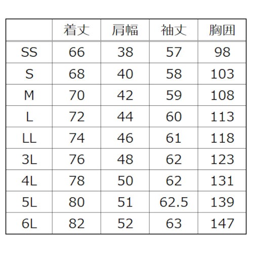 | カラー | サイズ | 数量 (着) |