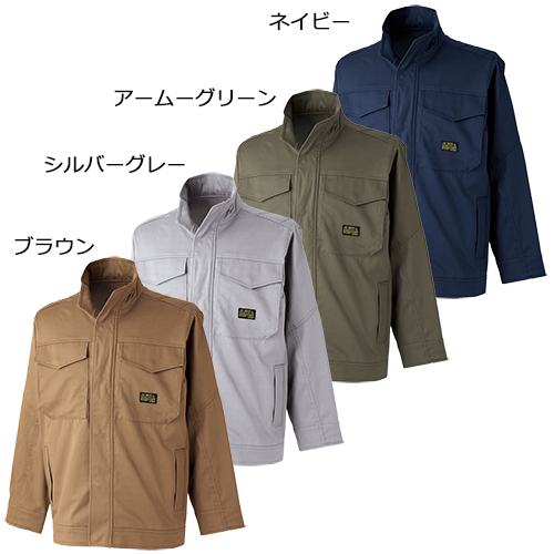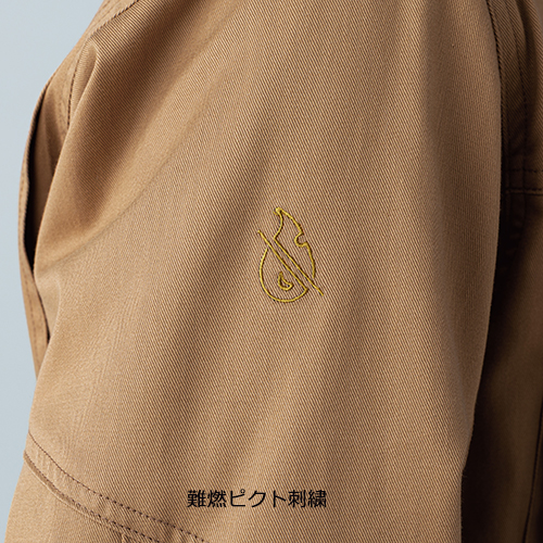 火気を扱う作業現場で安全性を確保するため、綿100%素材に難燃加工を施し、JIS T8130に適合させたワークウェア素材。また、綿100%素材の欠点である動きにくさを解消するため、横方向にストレッチ性(約9%)を付与し、快適性と機動性を追求している。![]()