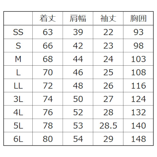 | ホワイト ネイビー ブラック | SS S M L LL 3L 4L 5L 6L | 1~ | ¥2,310 |