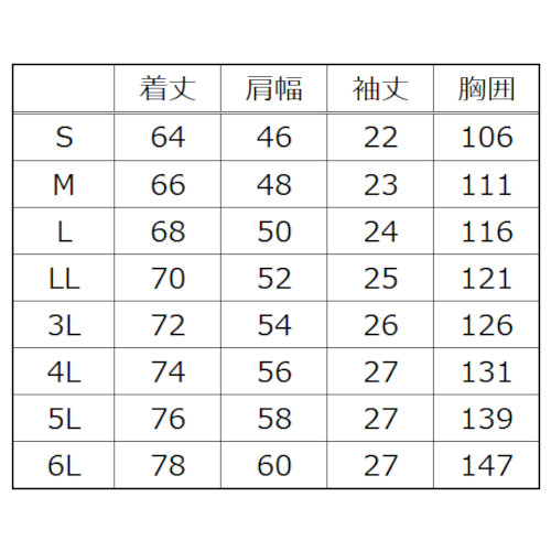 | チャコールグレー ネイビー ブラック | S M L LL 3L 4L 5L 6L | 1~ | ¥2,860 |