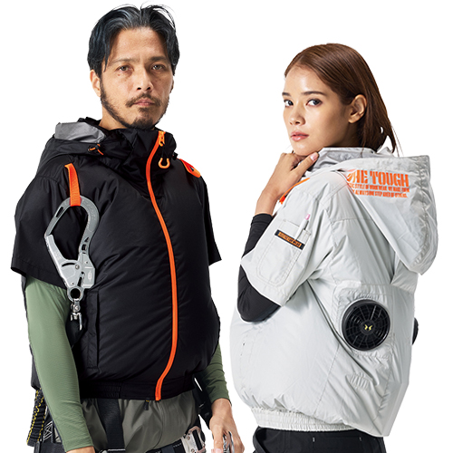 デタッチャブルフード・ハーネス対応・遮熱・ハイポジションファン仕様の機能を盛り込むことでコレ1着でも驚異の涼しさ!