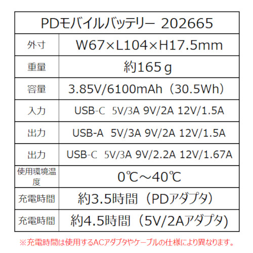 [アタックベース] 202665 PDモバイルバッテリー