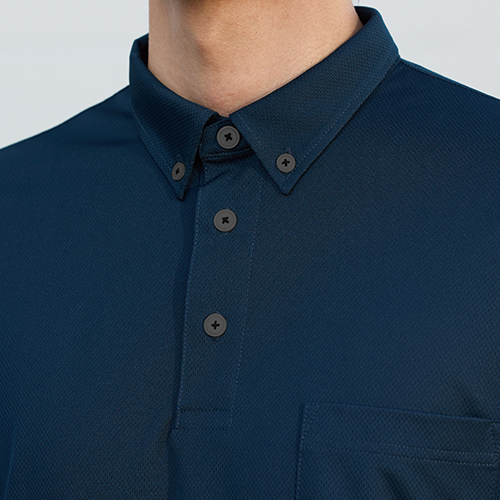 冷感素材で涼しくキチンと感があるボタンダウン仕様。