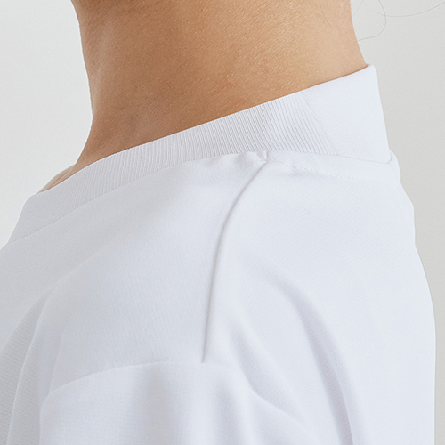 ストレッチ性、吸汗速乾性、透け防止、UVカット機能を備えた高機能ニット素材。