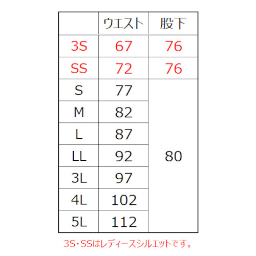 3S・SSはレディースシルエットです。