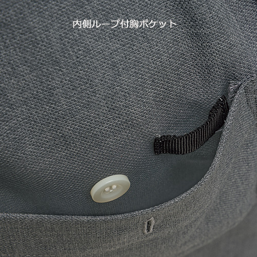 胸ポケットの内側にループ付き。ポケット口とループを重ねて名札クリップで挟めばキレイに収まります。ポケット口の保護にも。