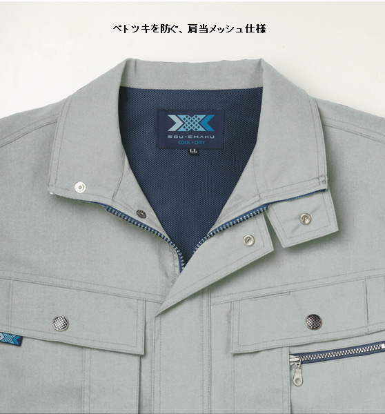 高通気・吸汗速乾「爽着」で熱中症予防対策で夏場の安全を!オールシーズン使える快適な着心地の長袖シャツ。透け防止、帯電防止、形態安定の三機能を兼ね備えます。