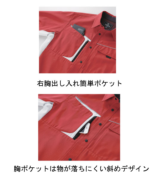 伸縮性にすぐれたウルトラストレッチ素材、脇がつっぱらないリラックスカットで動きやすい!JIS規格T-8118適合の静電気帯電防止作業服です。ガソリンスタンドなど引火性の危険がある物を扱う職場には欠かせません。素材はポリエステル90%、綿10%(裏綿ツイル)で吸汗性があり、肌触りも良く、伸縮性に優れ、丈夫でシワがよりにくい綾織りがポイントです。胸ポケットの上、そして背中を走るパイピングは反射素材。シャープな印象と共に前後どちらからも光を反射し、夜間の視認性を高めます。ストレッチ裏綿採用で柔軟にして優しい肌触りがあらゆるワーカーの強い味方!!