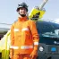 悪天候下での視認性を高めたレインスーツ。表面が濡れても輝度が変わらないEN471認証品を反射材に採用しています。