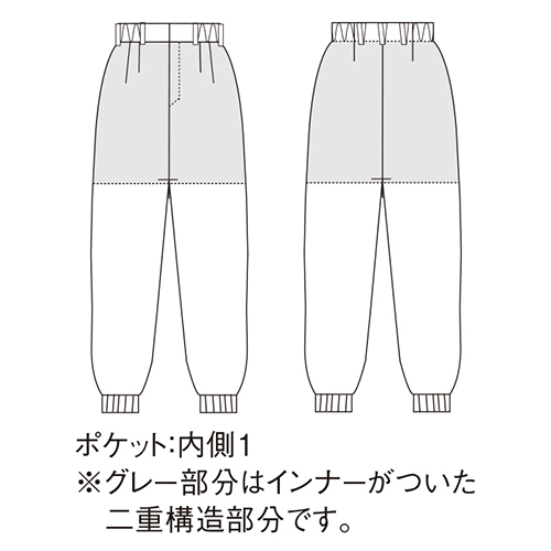 さらにO-157の繁殖を抑制する抗菌加工、ゴミの付着や放電ショックを防ぐ帯電防止仕様です。生地そのものからチリの出にくい素材(ポリエステルフィラメント糸)を使用しているので低発塵性。特殊セラミック糸が生地糸の透明度を遮断、Y字断面の繊維とダブルで透け防止効果。パンツ裾口のフライス仕様による体毛防止機構など、細かいところまで気が回る充実性能のクリーンウェアです。