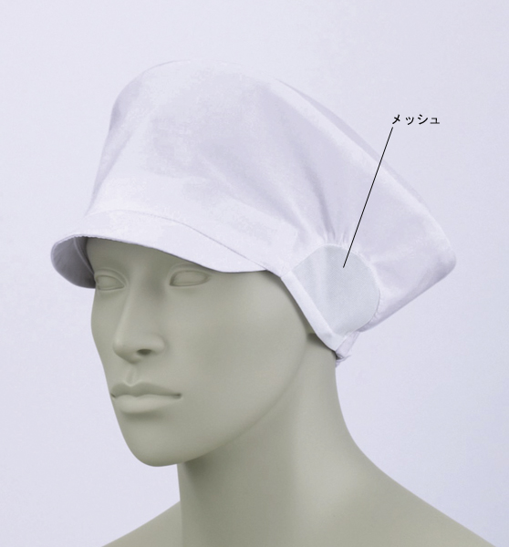 本製品は下記のタイプです。ご確認の上、職種・リスク回避レベルに応じてお選びください(○は対応、-は未対応)。制電素材 ○ 抗菌加工(O-157対応) ○ 耳元メッシュ - 天(頭頂部)メッシュ -