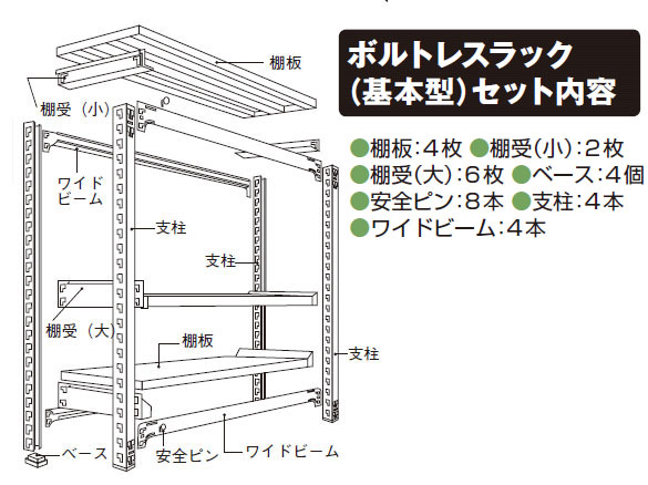 ボルトレスラック200kg基本型 高さ2400mm [5段]